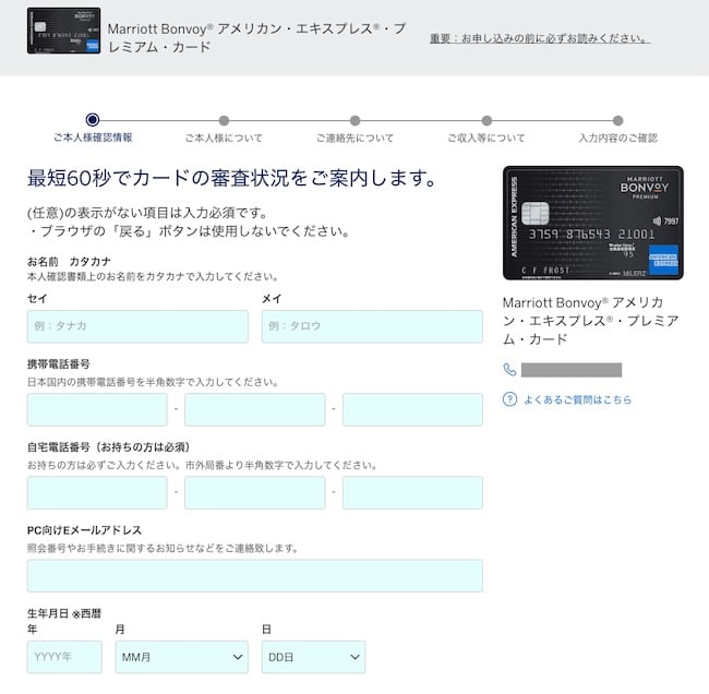 それではマリオットボンヴォイアメックスの入会申込み手順を解説していきます。